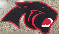 Decorate and show your Panther Pride by having the mascot on your left sleeve or on the back. The panther head is black with white teeth and is on red felt. 4'' inch panther head would be on the left sleeve and the other two sizes would be in the middle of the back.